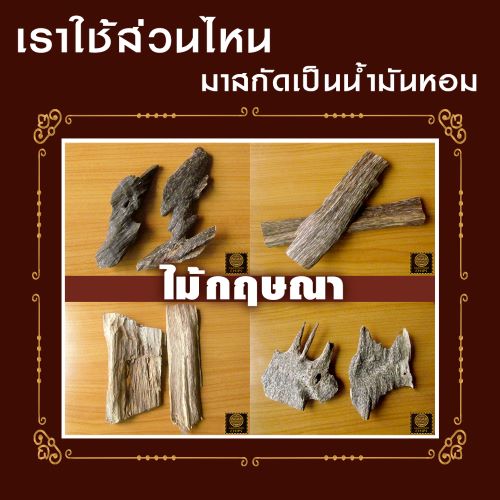 ไม้หอมที่มีมูลค่าอย่าง “ไม้กฤษณา” นั้น ความหอมของไม้จะอยู่ที่ “เนื้อไม้” เป็นที่ๆ มีสารกฤษณานั่นเอง เราจะนำมากลั่นผลิตน้ำมันหอมระเหยจากส่วนนี้ แต่ไม่ใช่ต้นกฤษณาทุกต้นจะสามารถนำมาใช้งานได้เสมอไป เราจะพบลักษณะเนื้อไม้ของต้นกฤษณาอยู่ 2 ประเภทหลักๆ คือ เนื้อไม้ส่วนที่ไม่มีน้ำมัน และเนื้อไม้ส่วนที่มีน้ำมัน